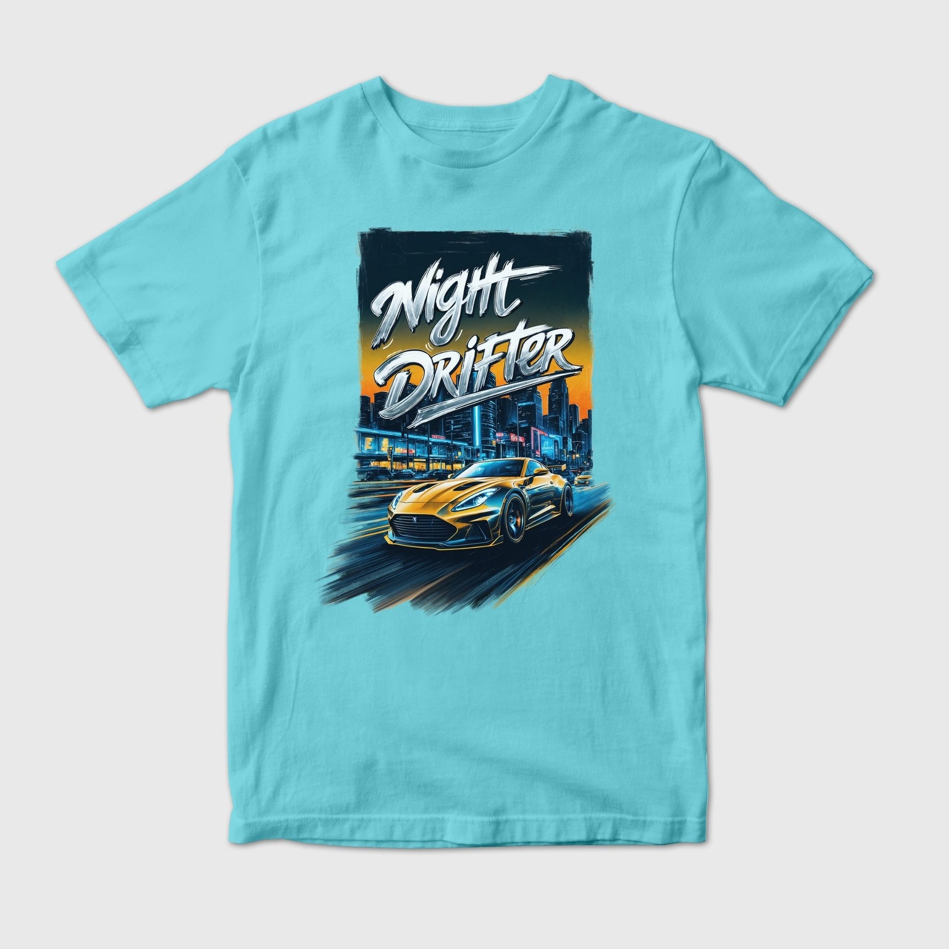 Grab the thrill of the night with this dynamic design featuring a sleek, yellow sports car speeding through a vibrant cityscape at dusk or dawn. The bold "Night Drifter" lettering captures the essence of urban speed and the freedom of the open road under the city lights. Perfect for car enthusiasts, night drivers, and anyone who loves the energy and excitement of the city after dark. Feel the rush and let your style drift into the night with this Neo-graffiti.