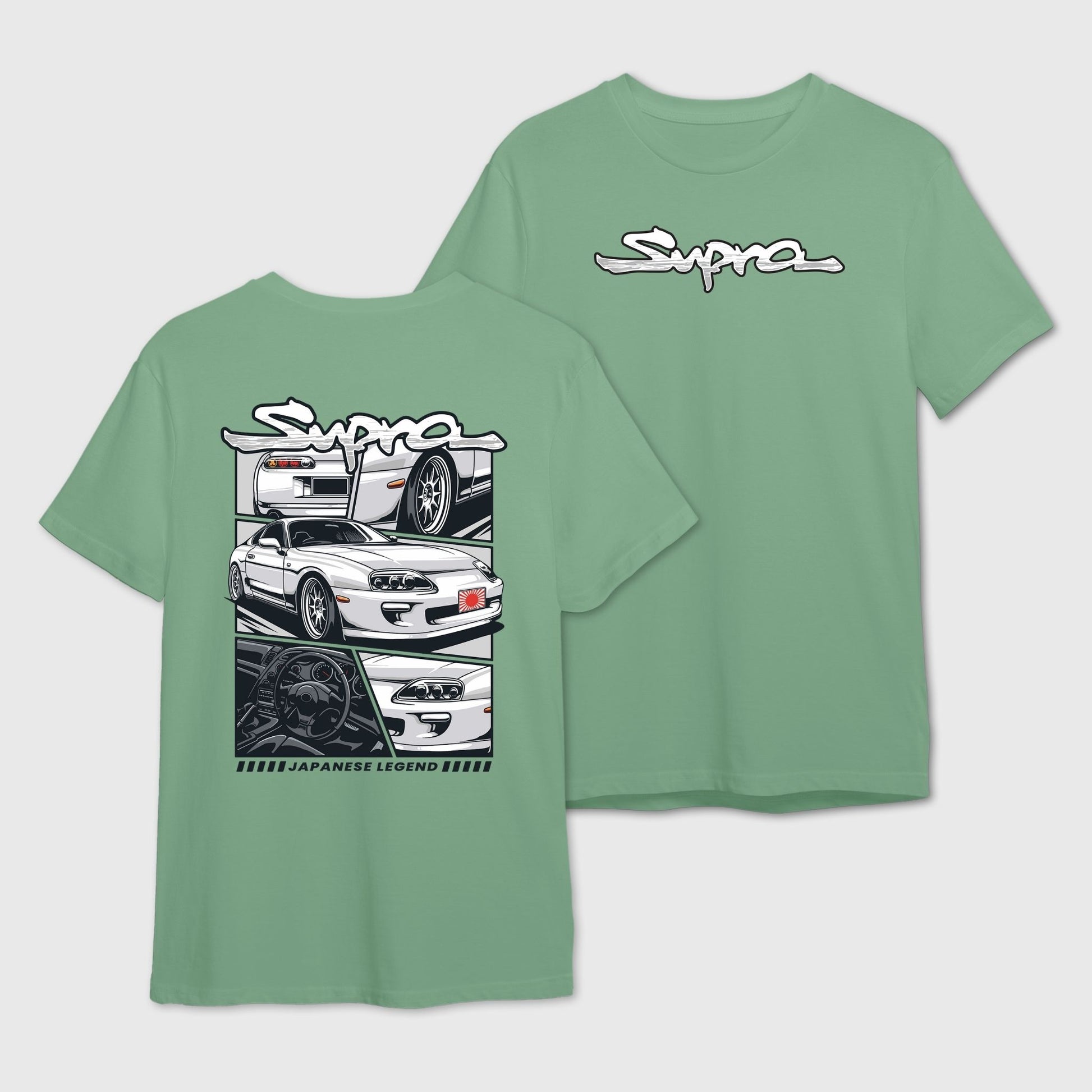 Unleash your JDM passion with this JAMtees Supra t-shirt, a must-have for every Japanese car enthusiast! This exclusive design celebrates the iconic Supra, a true Japanese legend, featuring a dynamic multi-panel graphic on the back that highlights its sleek profile and classic details. The front sports a clean, bold "Supra" logo. Perfect for fans of JDM culture, car meets, and automotive history, this premium tee is more than just apparel—it's a tribute to a high-performance legend. Get your Japanese legend tee today and wear your love for a racing icon with pride. This is the perfect gift for car lovers who appreciate import car style.